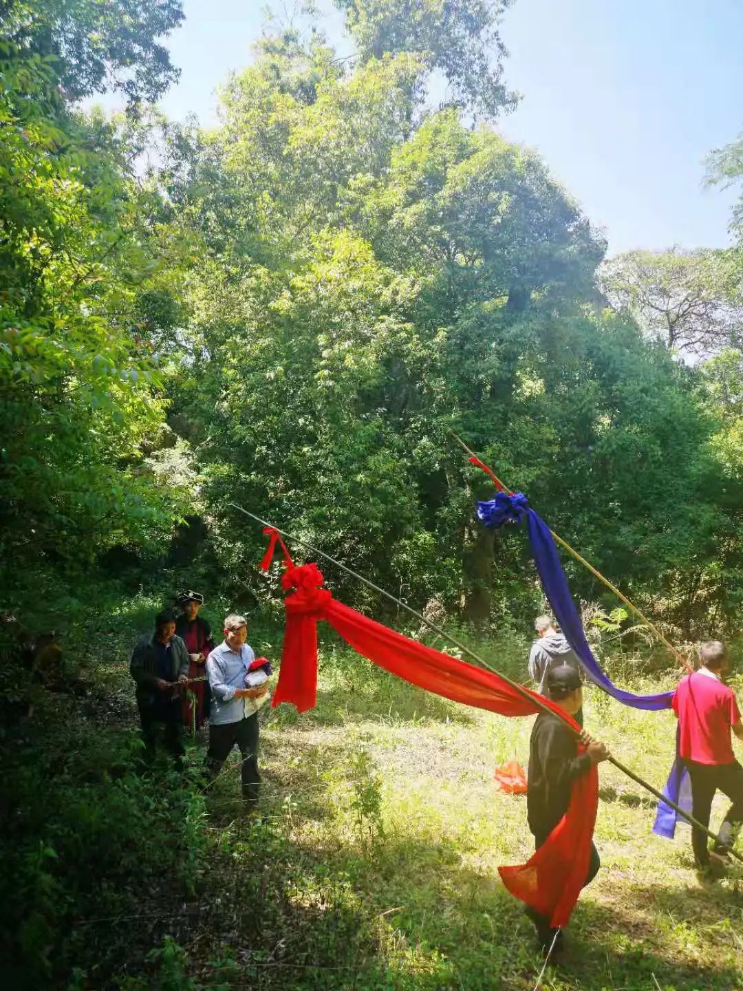 然后抱着白公鸡去祭祀风雨神“龙树”,保佑全村365天,风调雨顺,五谷丰登。祭祀完,白公鸡也现场宰杀献祭。